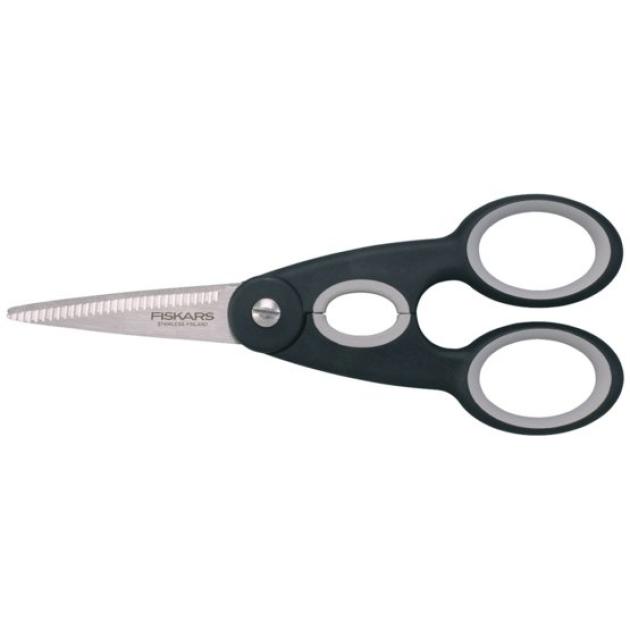 Libisemiskindlad pehmete käepidemetega käepidemed, mis tagavad kindla haardumise ja on vormitud PET-pudelite lahti kruvimiseks. Tugevad teravad käärid, mille alumine tera on hammastega, mis hõlbustavad lõikamist.