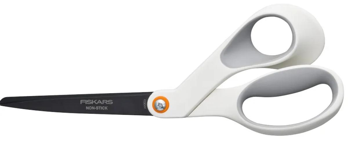 Fiskars Non-Stick™ universaalsed käärid on ideaalsed kleepuvate materjalide lõikamiseks.