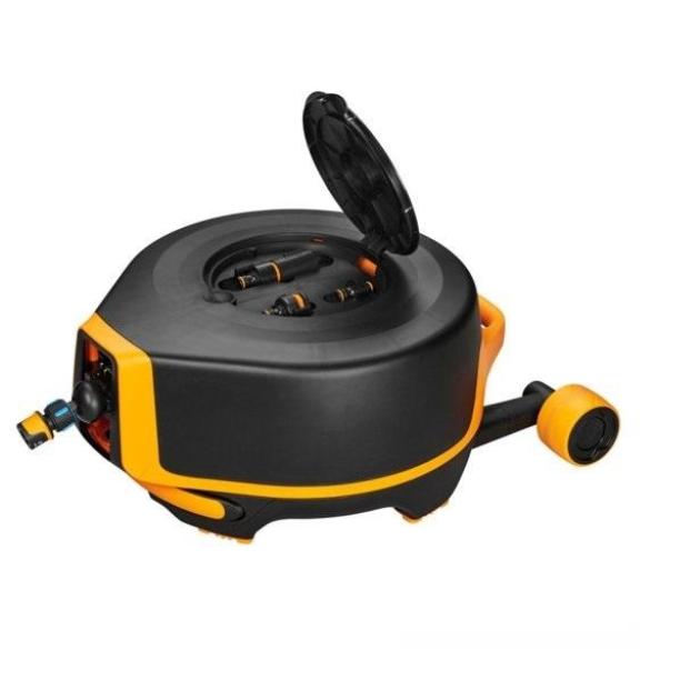 - Sisaldab kvaliteetset, automaatselt sissetõmmatavat kastmisvoolikut, reguleeritavat kastmisotsikut ja vajalikke voolikuliitmikke.